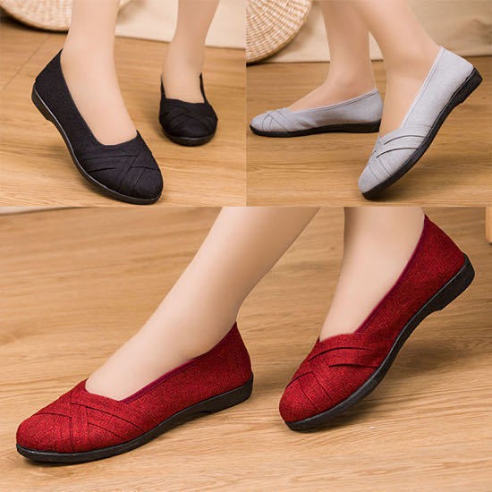 Kasut Perempuan Women S Shoes Kasut Kain Beijing Lama Wanita Kasut Tunggal Mulut Cetek Tumit Rata Rata Kasut Kasut B Shopee Malaysia